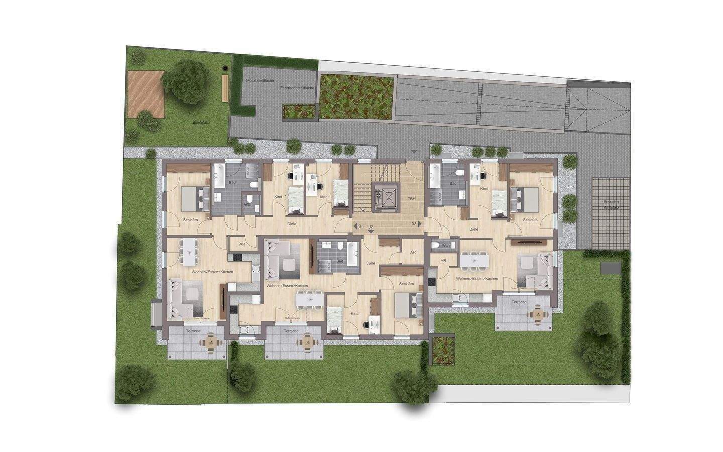 Visualisierung einer eingerichteten Wohnung - 3 Zimmer Etagenwohnung zum Kaufen in Roth