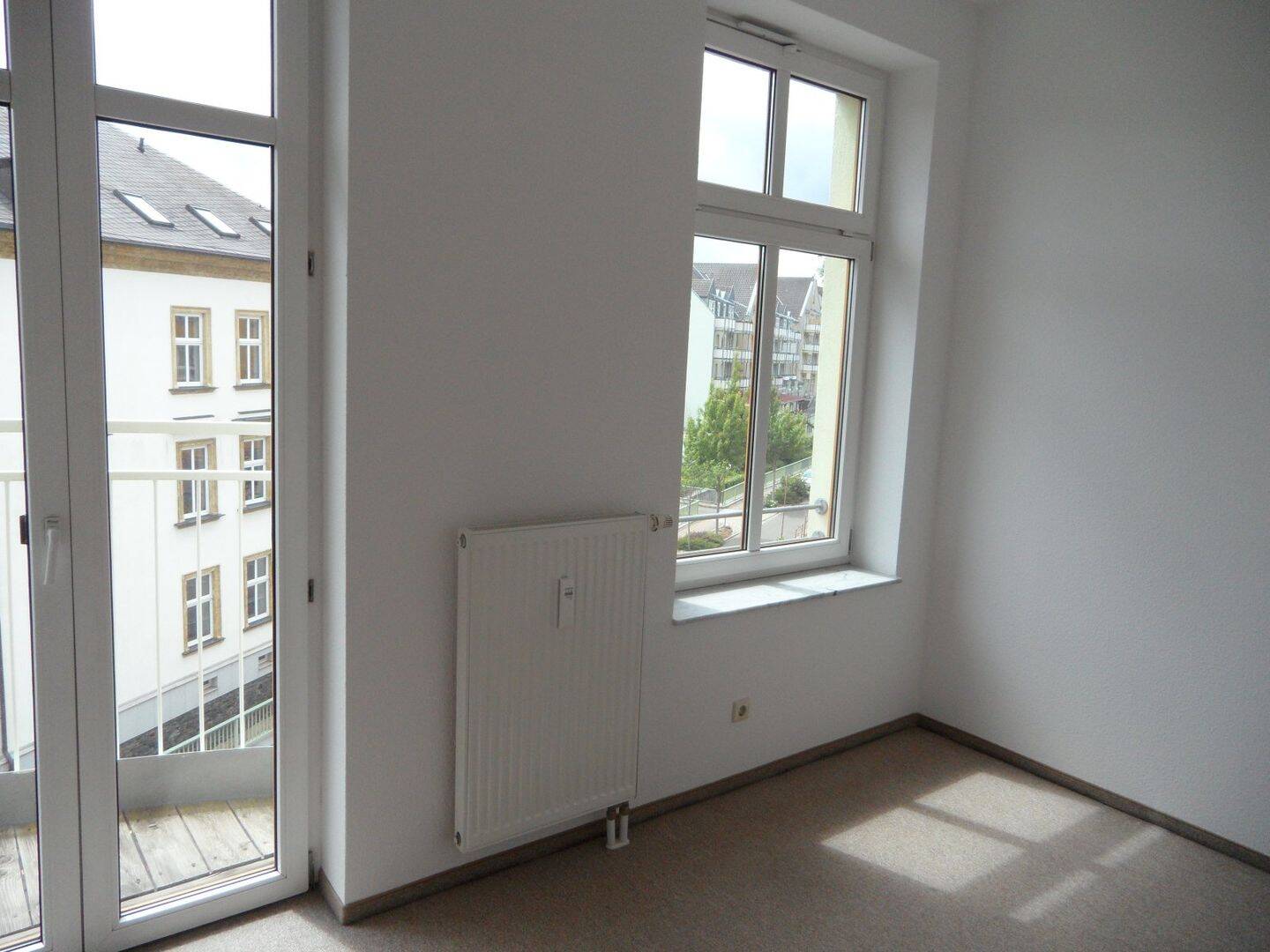 • Wohnzimmer mit Zugang zum Balkon - 1 Zimmer Etagenwohnung in Zwickau