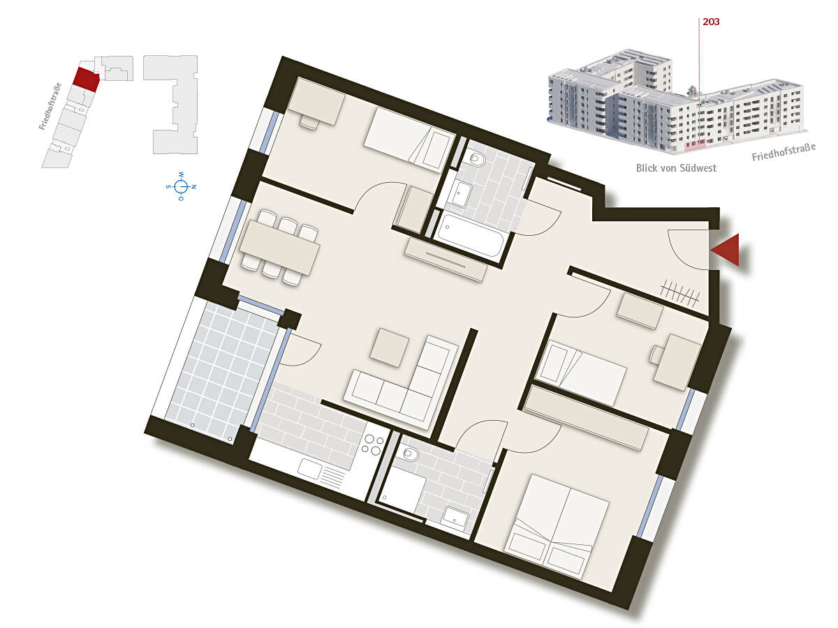 • Unverbindliche Illustration: Häuser 1 u. 2, Nordwest - 4 Zimmer Etagenwohnung in Stuttgart