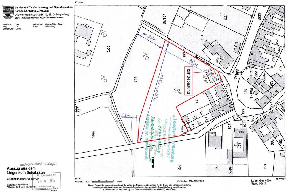 • Katasterplan - sofort bebaubares Baugrundstück mit Genehmigung in Zahna