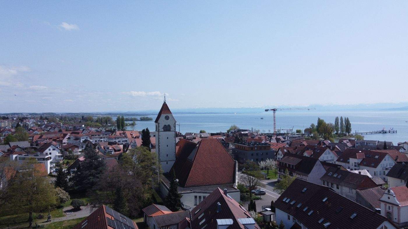 • Blick Drohne zum Bodensee -
