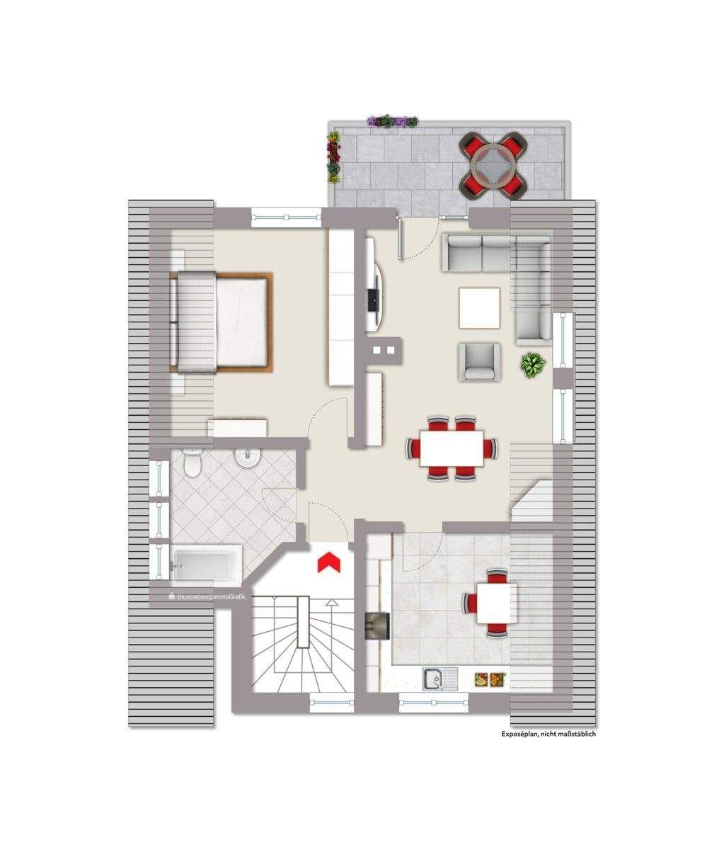• Wohnküche im Spitzgeschoss -