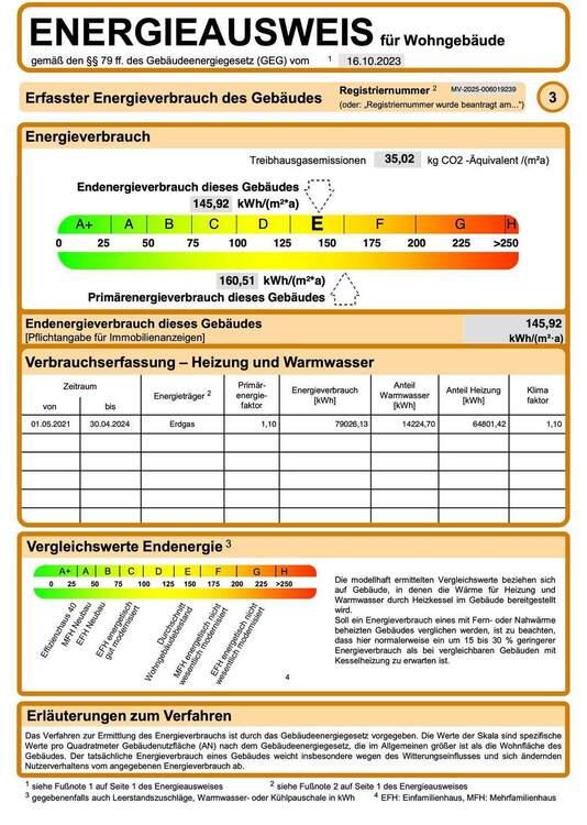 | Energieverbrauchkennwert: | 145,92 kWh/(m²·a) kWh/(m²·a)