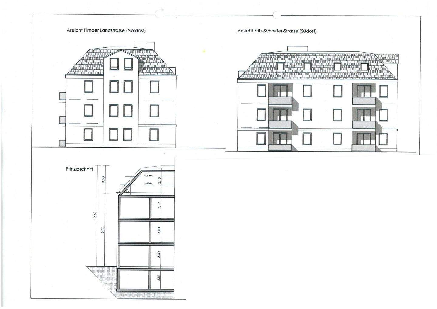 • Außenans. und Schnitt Haus 1 -