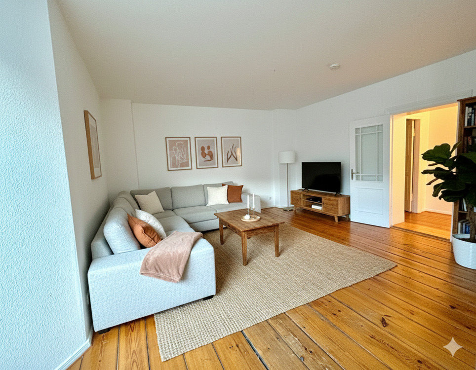 • Wohnzimmer Einrichtungsbeispiel - 3-Zimmer im Helmholzkiez mit genehmigter Balkonplanung