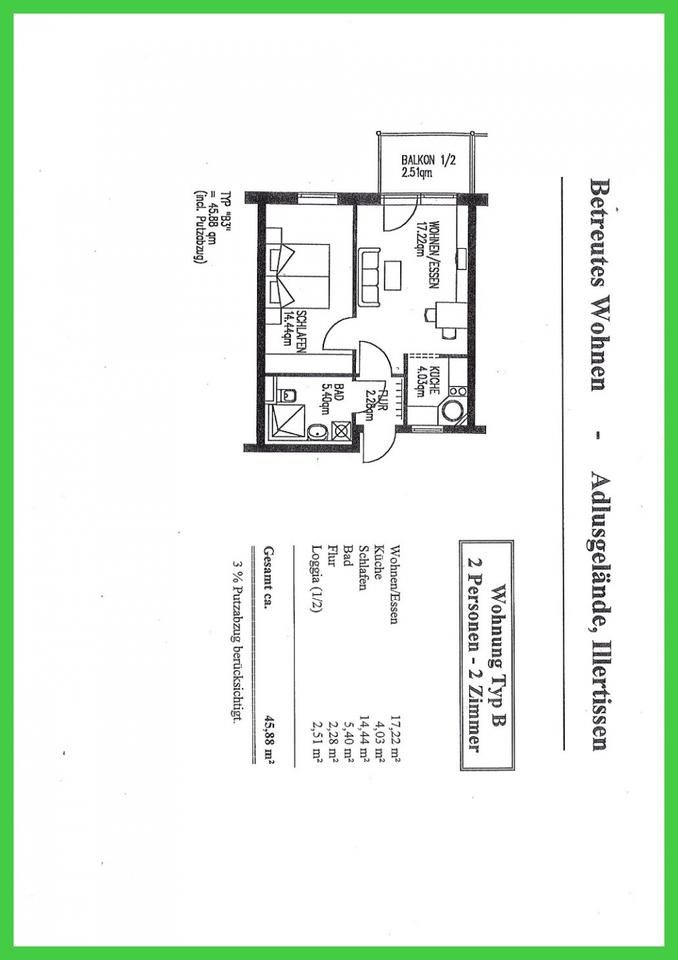 Sie befinden sich hier: Schöne Seniorenwohnung zu vermieten - einfach Wohlfühlen in Illertissen - Mindestalter: 60 Jahre - in Illertissen - 3356029291-203-6651 | 1A-Immobilienmarkt.de