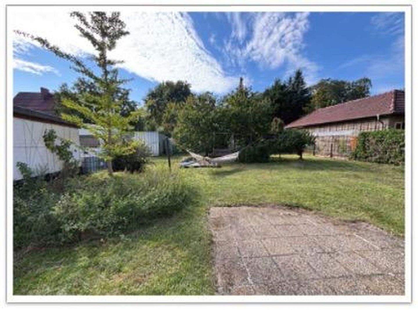 • Blick in den Garten vom Haus - 3 Zimmer Einfamilienhaus zum Kaufen in Zeuthen