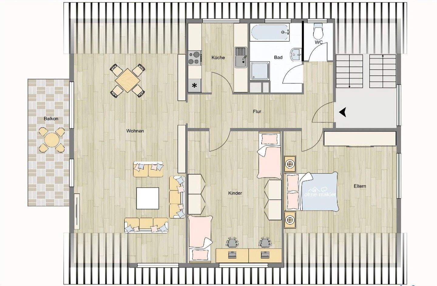 Wohnzimmer (virtuell möbliert) - Schöne, helle DG-Wohnung mit 4,5 Zimmern