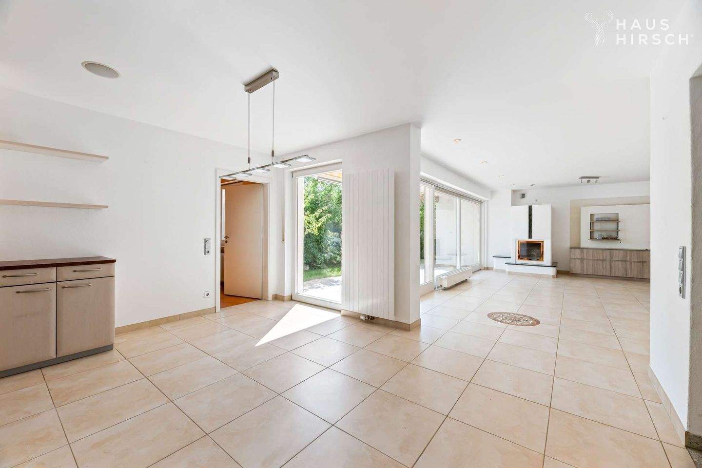 • Wohnzimmer - Vielseitig wohnen: modernisierter Bungalow mit Sauna, Kamin, Terrasse & Einlieger-Gewerbeoption