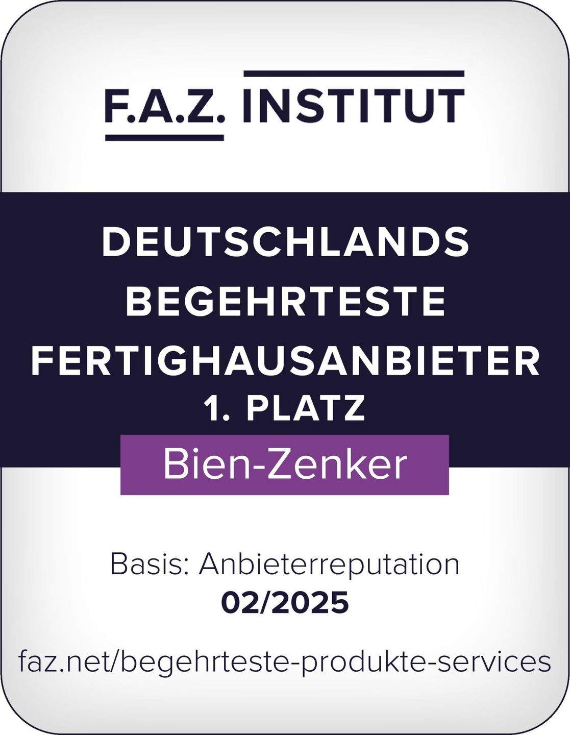 • Herausragende Kundenzufriedenheit Fertighausanbieter 1. Platz Bien - Zenker -