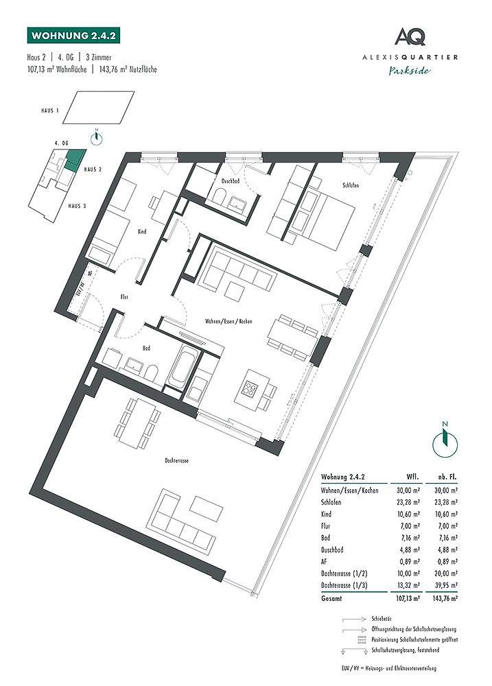 3-Zi.-Dachterrassentraum mit en suite Tageslichtbad direkt am Quartierspark