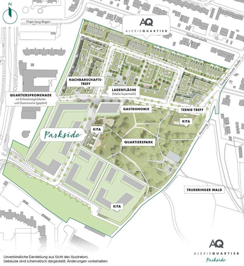 Illustration 1 - 3-Zi.-Dachterrassentraum mit en suite Tageslichtbad direkt am Quartierspark