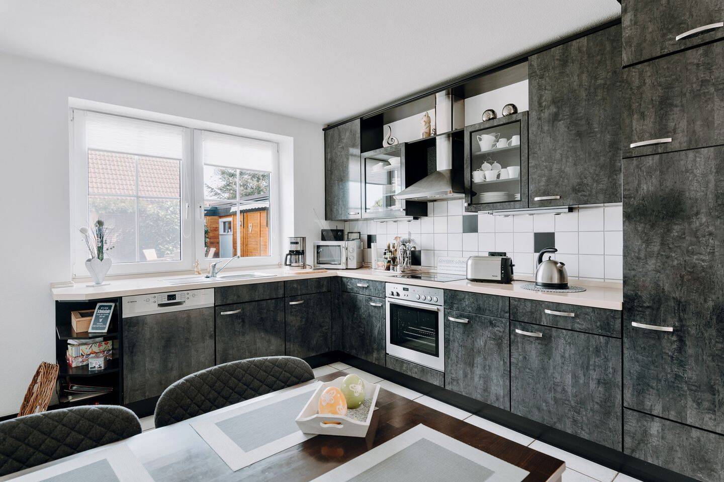 • Voll ausgestattete Einbauküche mit Marken-Geräten von Siemens -