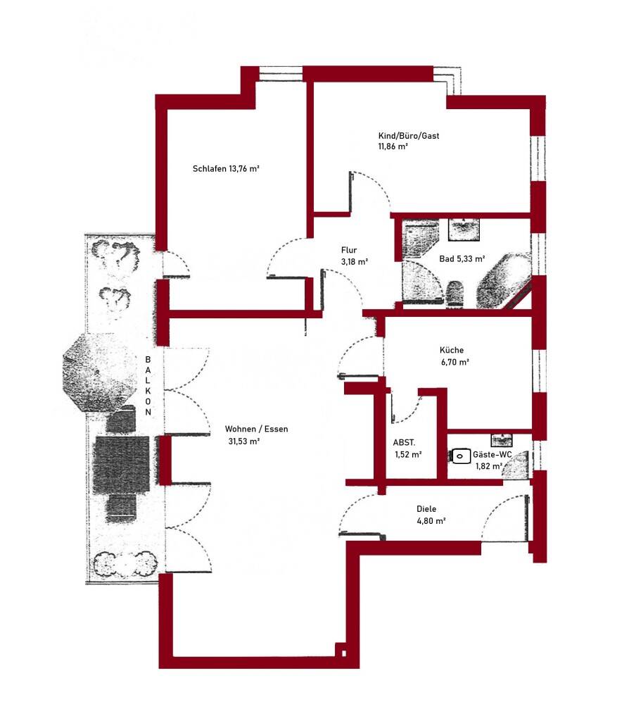 Wohnfläche:ca. 86,00 m²