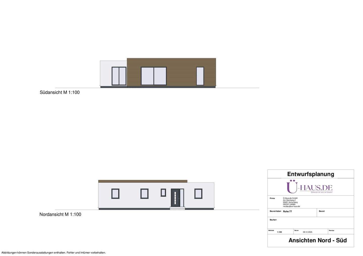 Frontbild mit Logo - Rohe 77 - Moderner Bungalow in KfW 40, einzugsfertig inkl. KfW40, Fundamente