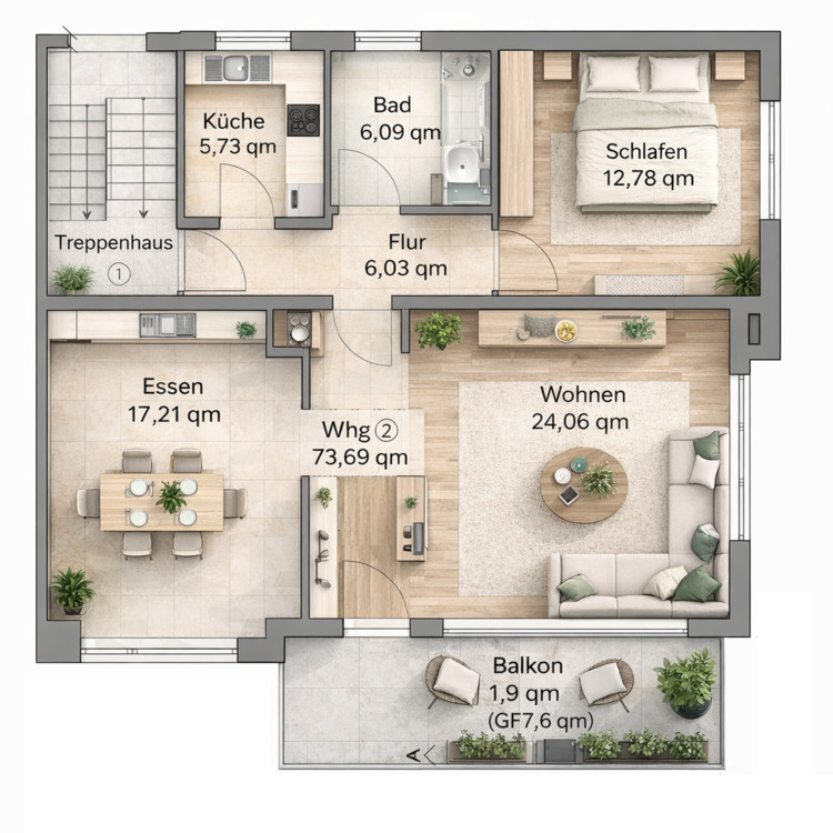 Wohnfläche:ca. 73,70 m²