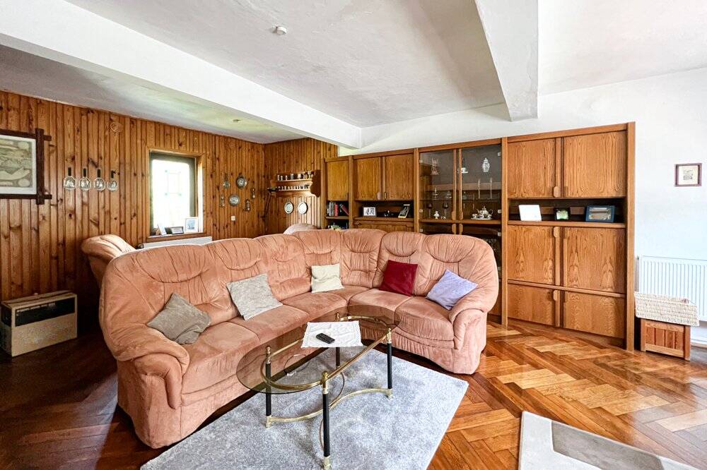 • Großes Wohnzimmer mit Holztäfelung -