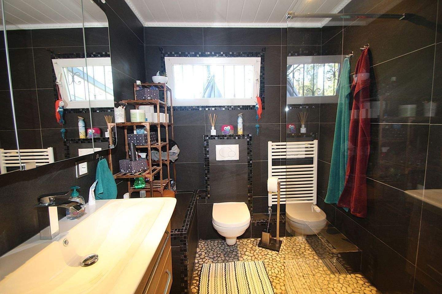 • Das Badezimmer mit einer bodengleichen Dusche -