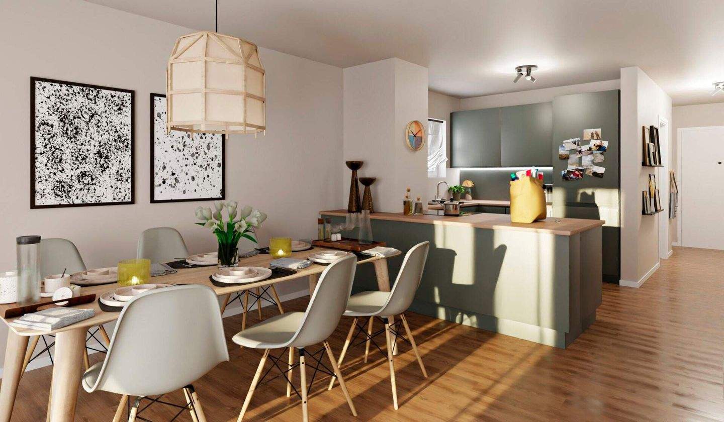 • Gemütlicher Essbereich an der offenen Küche - 5 Zimmer Einfamilienhaus zum Kaufen in Berlin