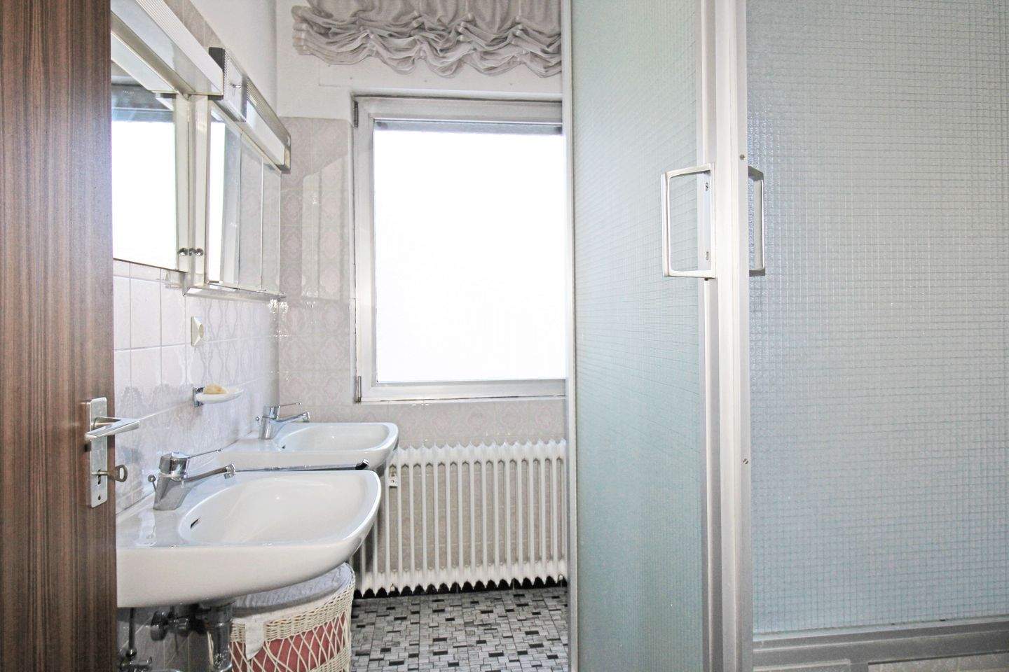 • Dusche, Badewanne und zwei Waschbecken -