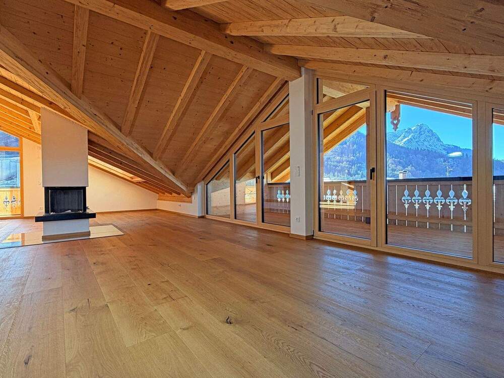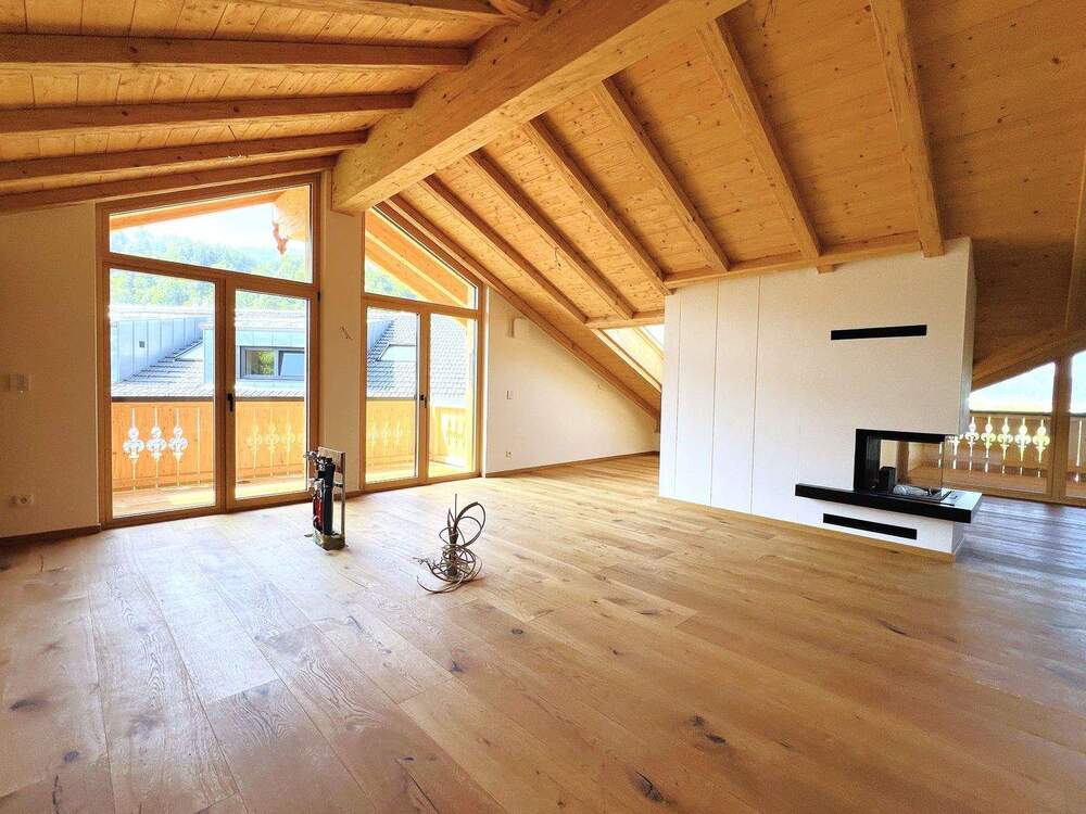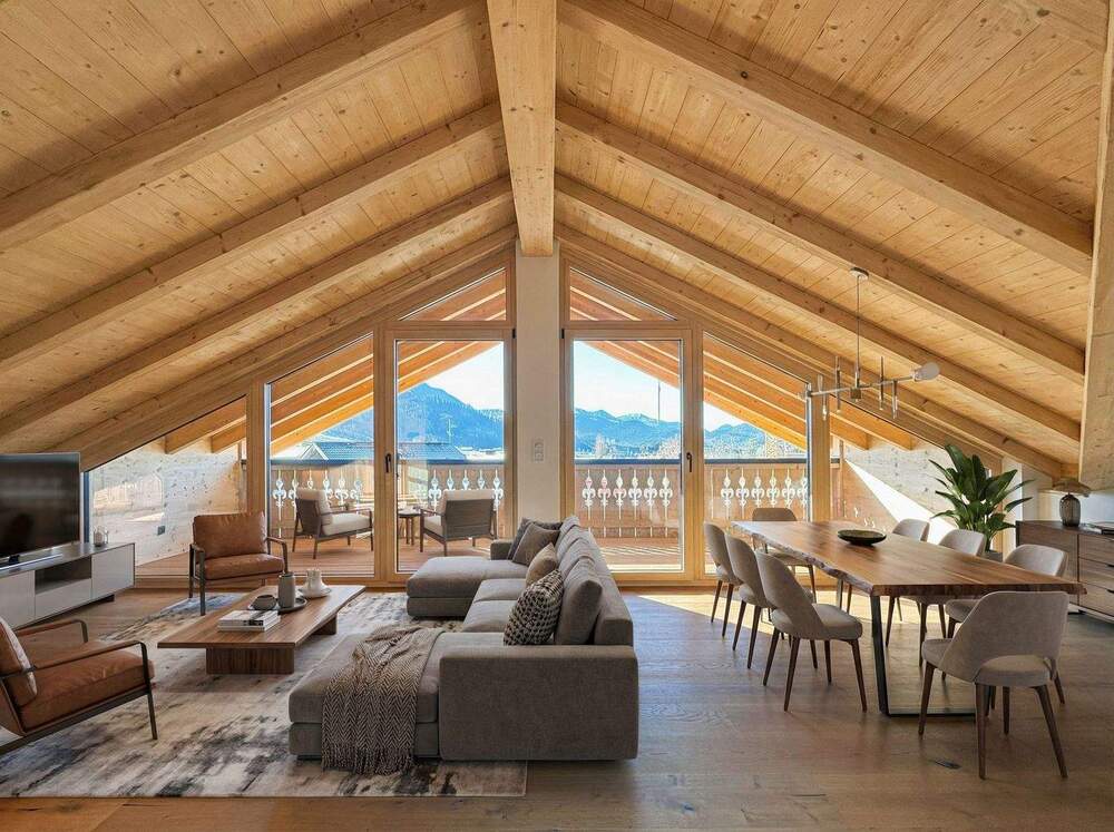 • Wohnbereich mit Sichtdachstuhl - 3 Zimmer Etagenwohnung zum Kaufen in Garmisch-Partenkirchen