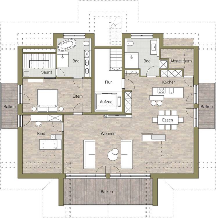 • Visualisierung Wohnbereich - Luxuriöse Neubau - Dachgeschosswohnung im Alpenchic mit Panoramablick