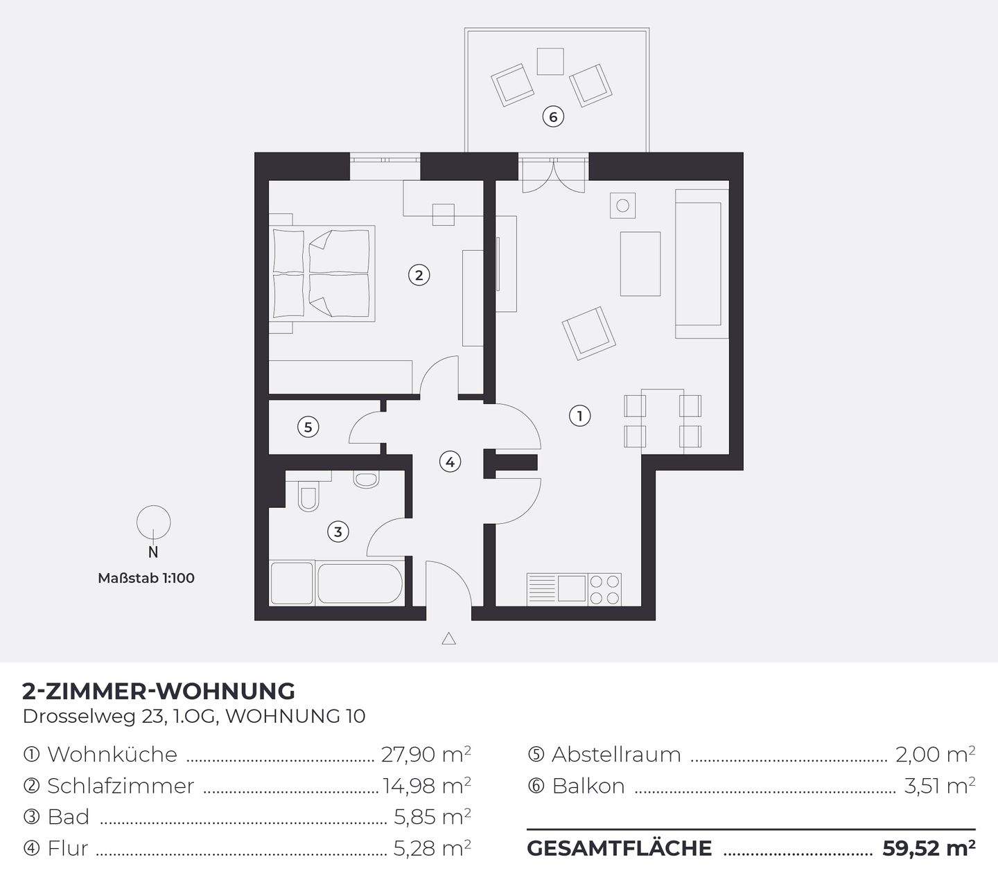 Wohnfläche:ca. 59,50 m²