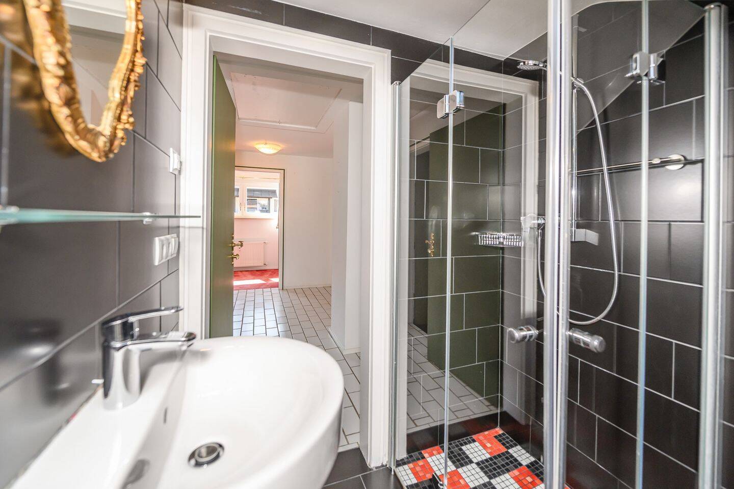 • Raumhoch gefliestes Bad