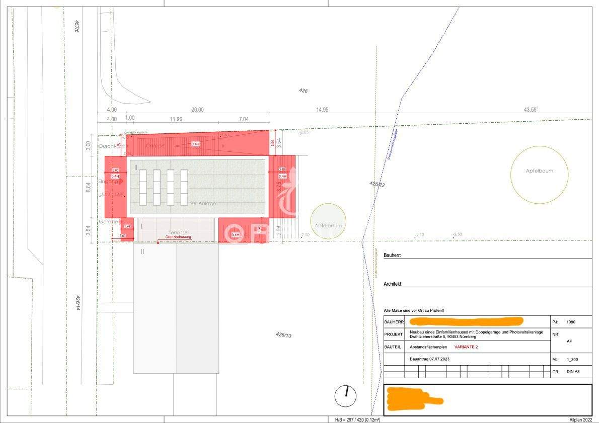 Abstandsflächen Variante 2 - Grundstück in Nürnberg