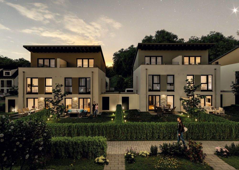 • Außenansicht Gartenseite Abend Pultdach - Doppelhaushälfte mit 130,50 m² in Marktheidenfeld zum Kaufen