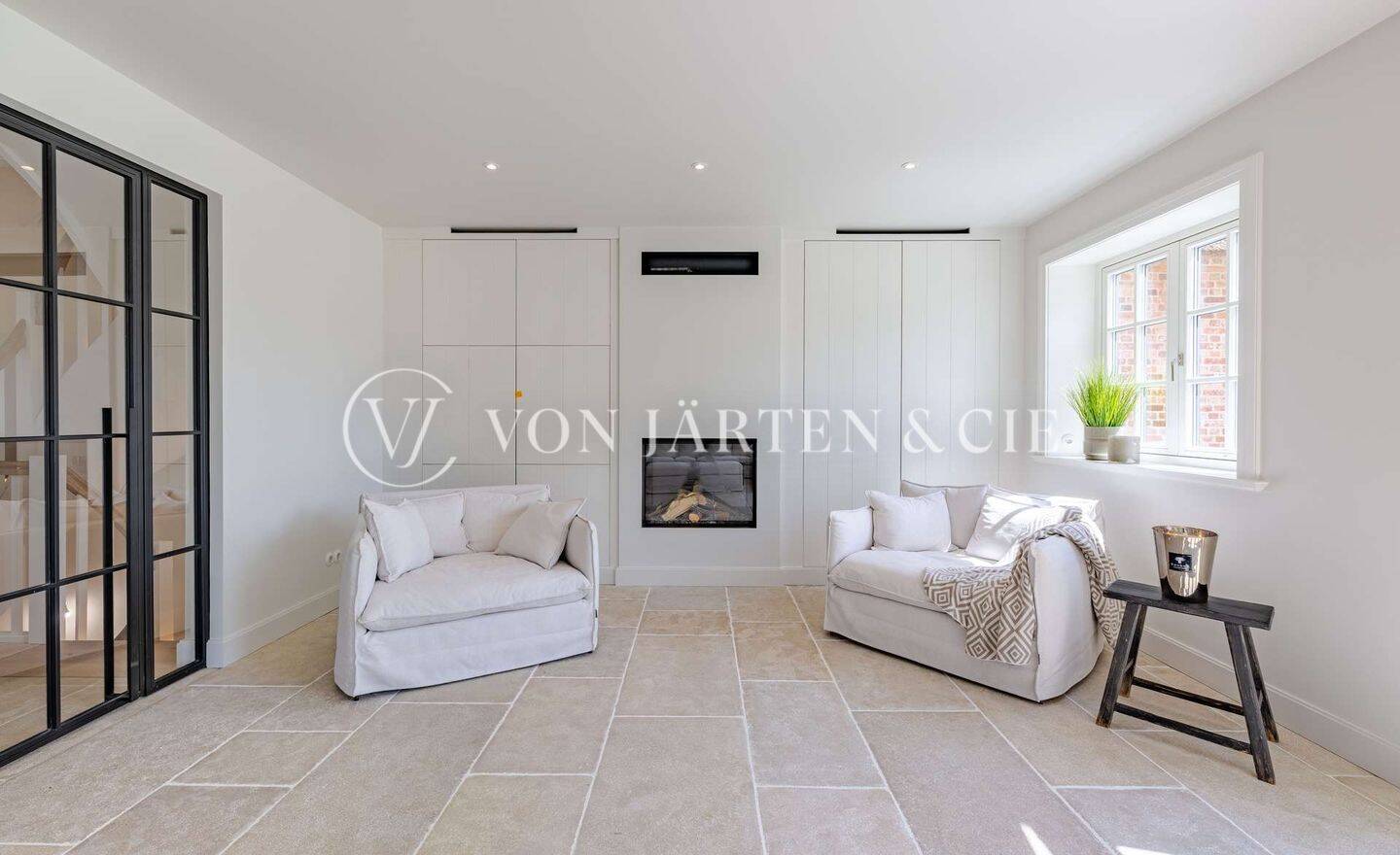 • Wohnbereich mit Gaskamin - Doppelhaushälfte mit 239,00 m² in Wenningstedt-Braderup (Sylt) zum Kaufen