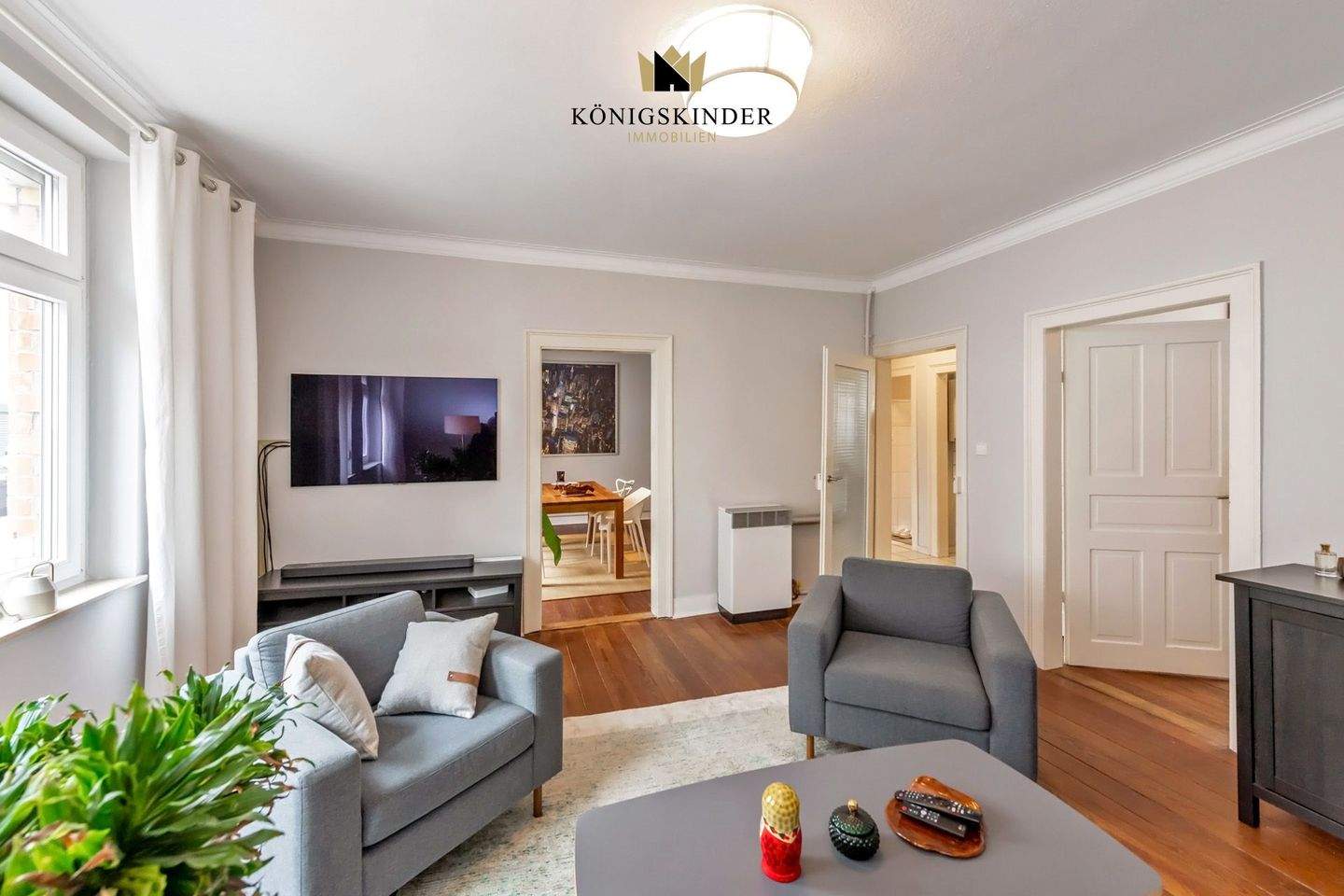 • Wohnraum mit Blick in den Flur und Schlafzimmer - NEU: PROVISIONSFREI! Ihr neues Zuhause: Ruhige Lage, große Lebensqualität in Stuttgart-Gaisburg!