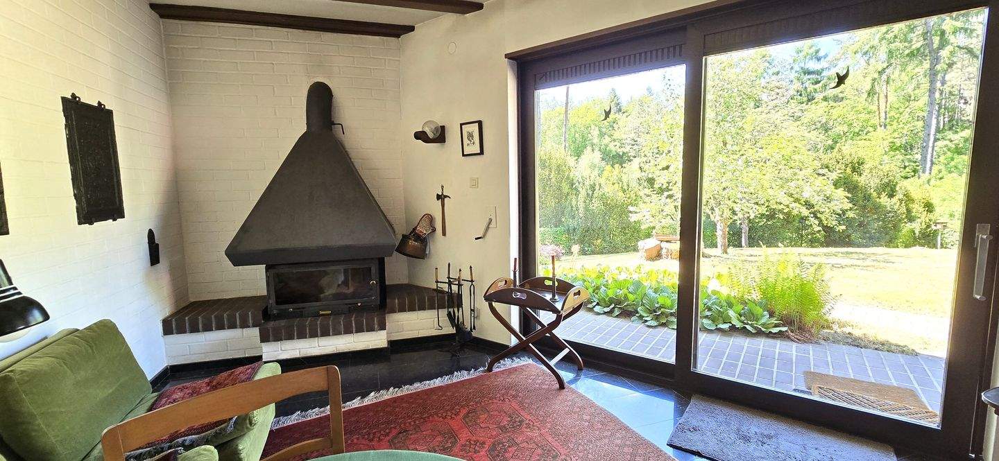 • Kamin vor dem Wintergarten -