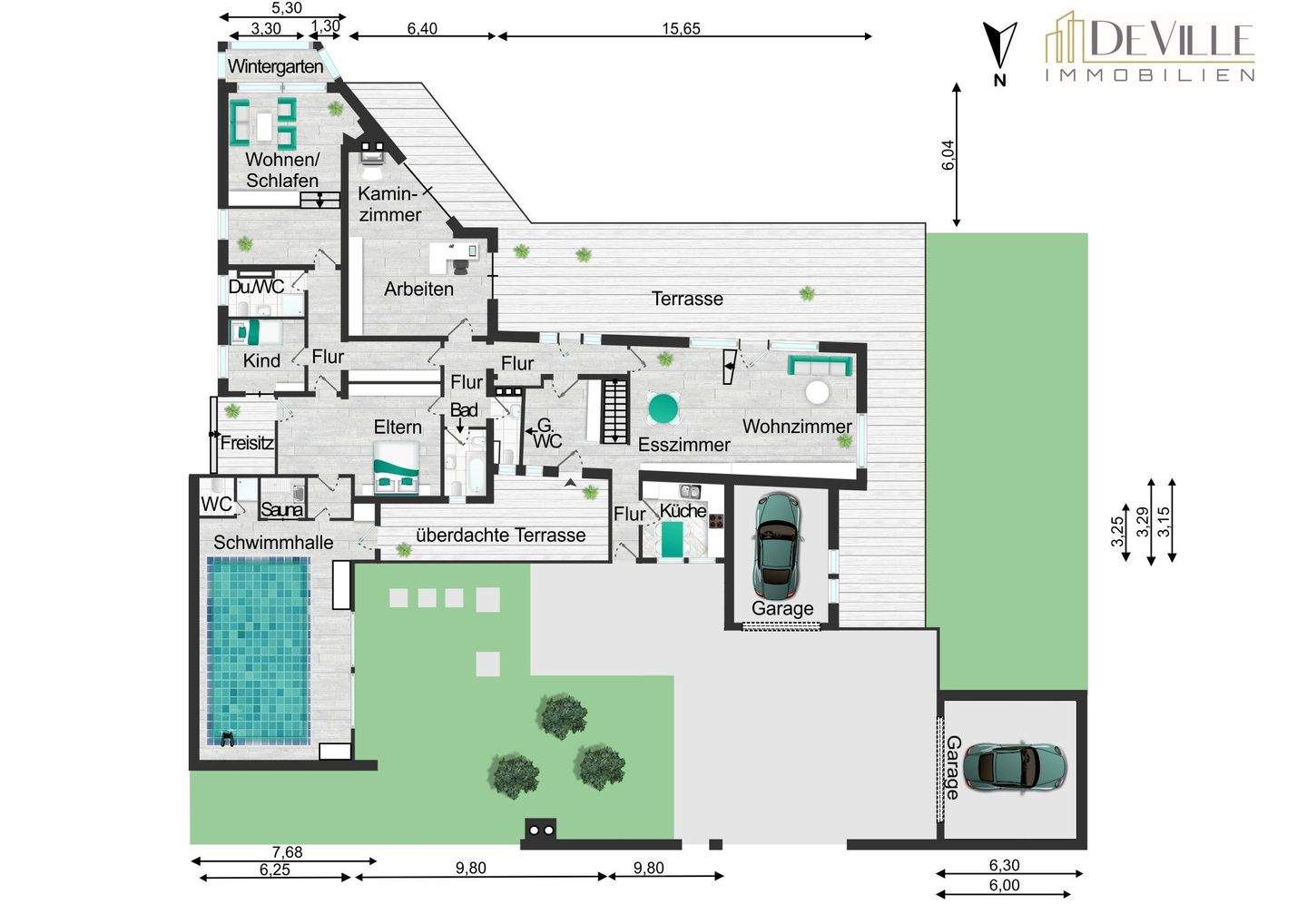 • Wintergarten, Kamin -