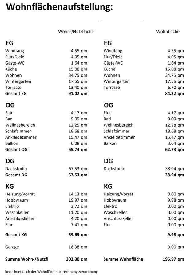 • Wohnflächenaufstellung. -