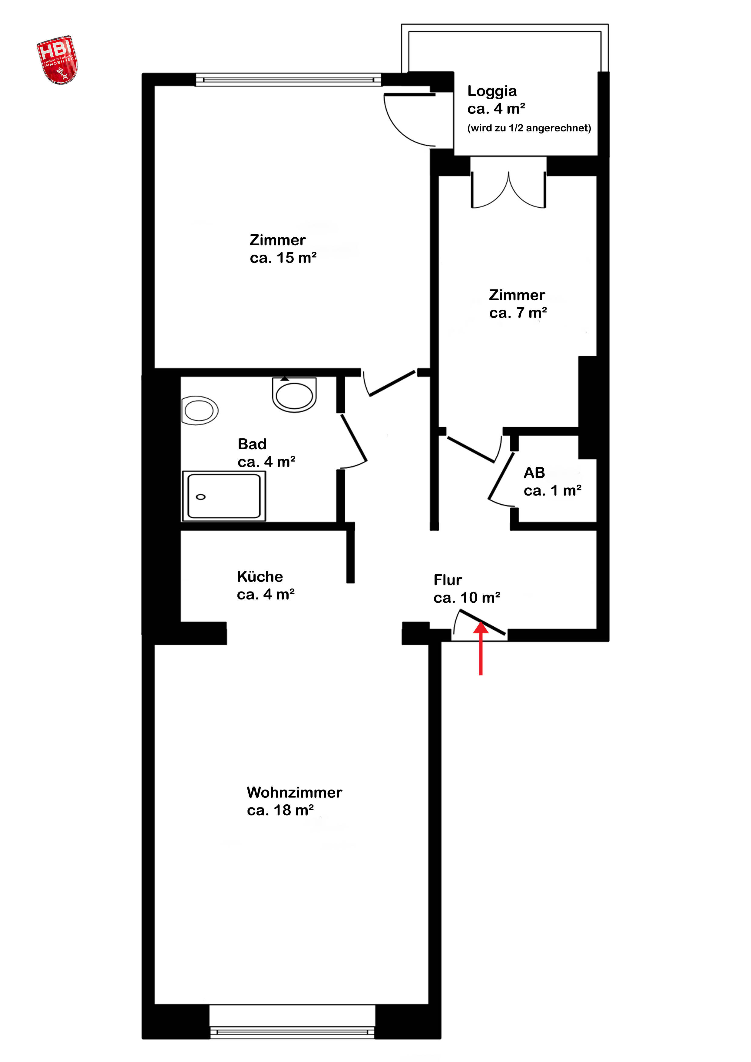 Flur - Etagenwohnung mit 61,00 m² in Bremen zum Kaufen