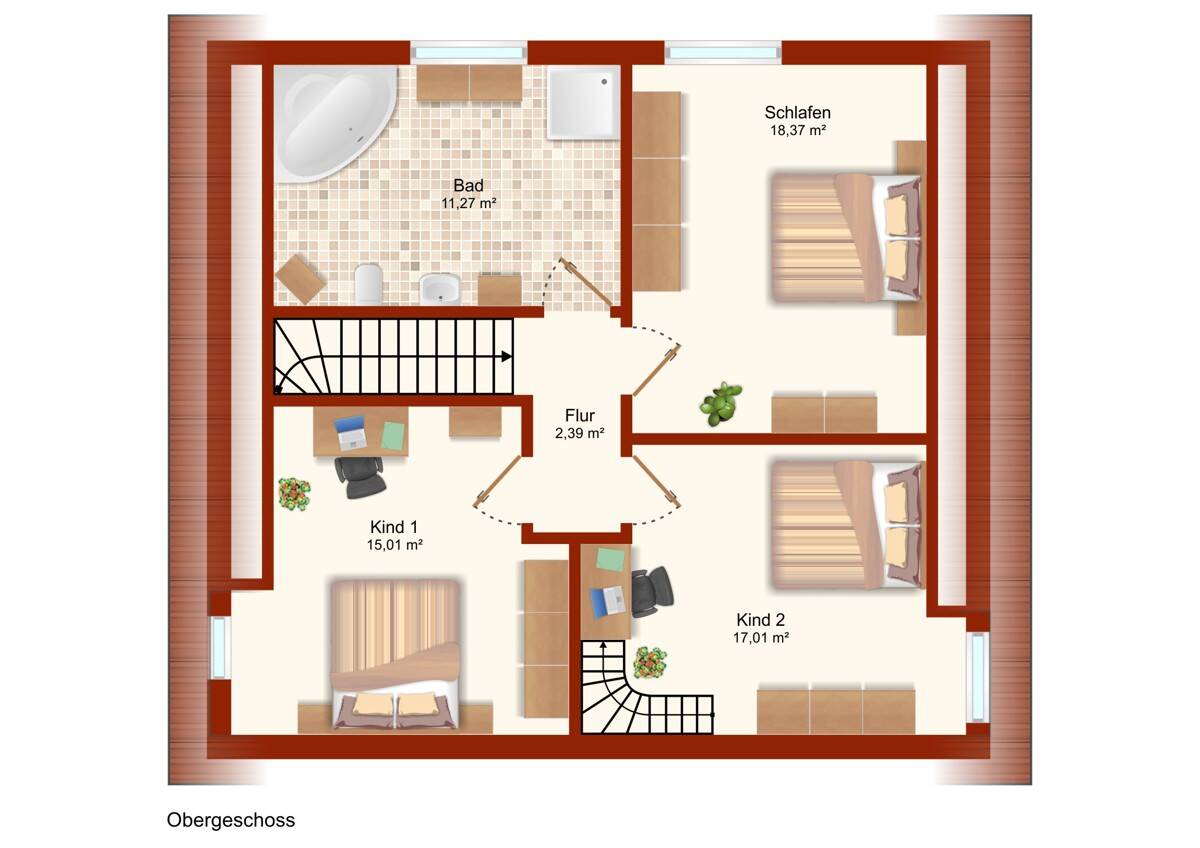 • Kinderzimmer 2 im OG mit Treppe zum DG -