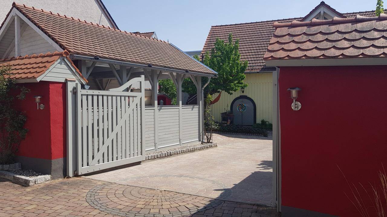 • Blick Einfahrt und Carport -