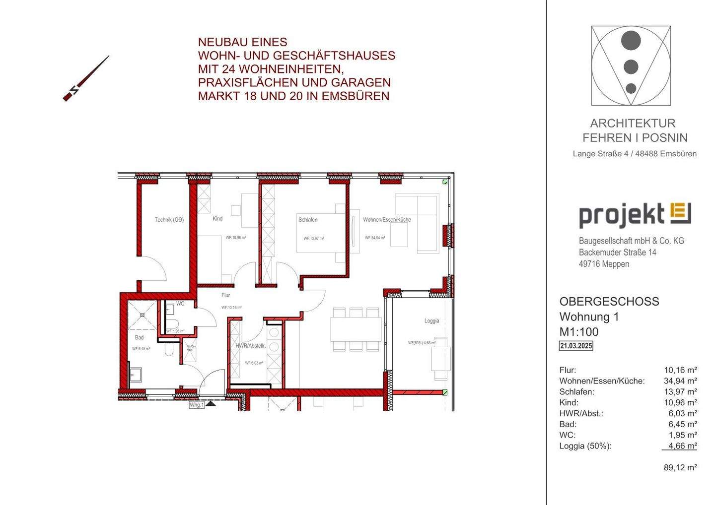 Grundriss Wohnung Nr. 1 - Etagenwohnung mit 89,00 m² in Emsbüren zum Kaufen
