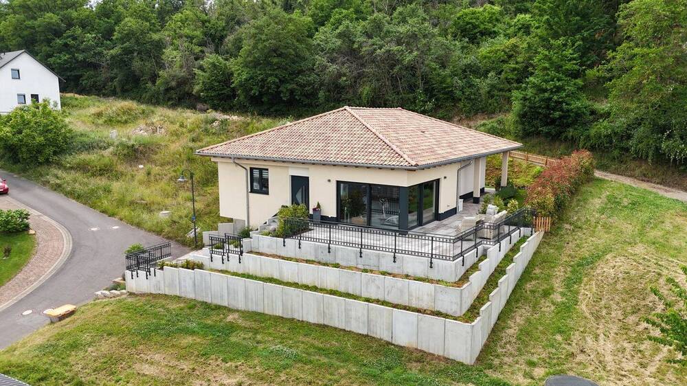 Sie befinden sich hier: Neuwertiger Design-Bungalow mit Weitblick - Energieklasse A & Wohnen auf einer Ebene in Staudernheim - 25XZ2KPCUSBL | 1A-Immobilienmarkt.de
