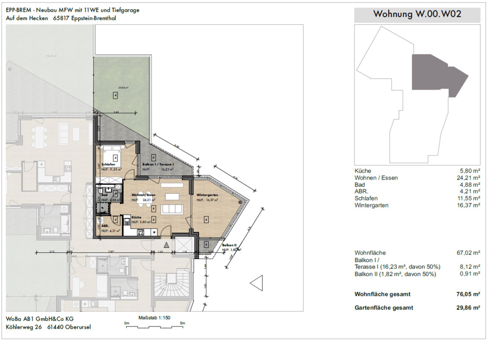 Gesamtgröße:ca. 76,00 m²