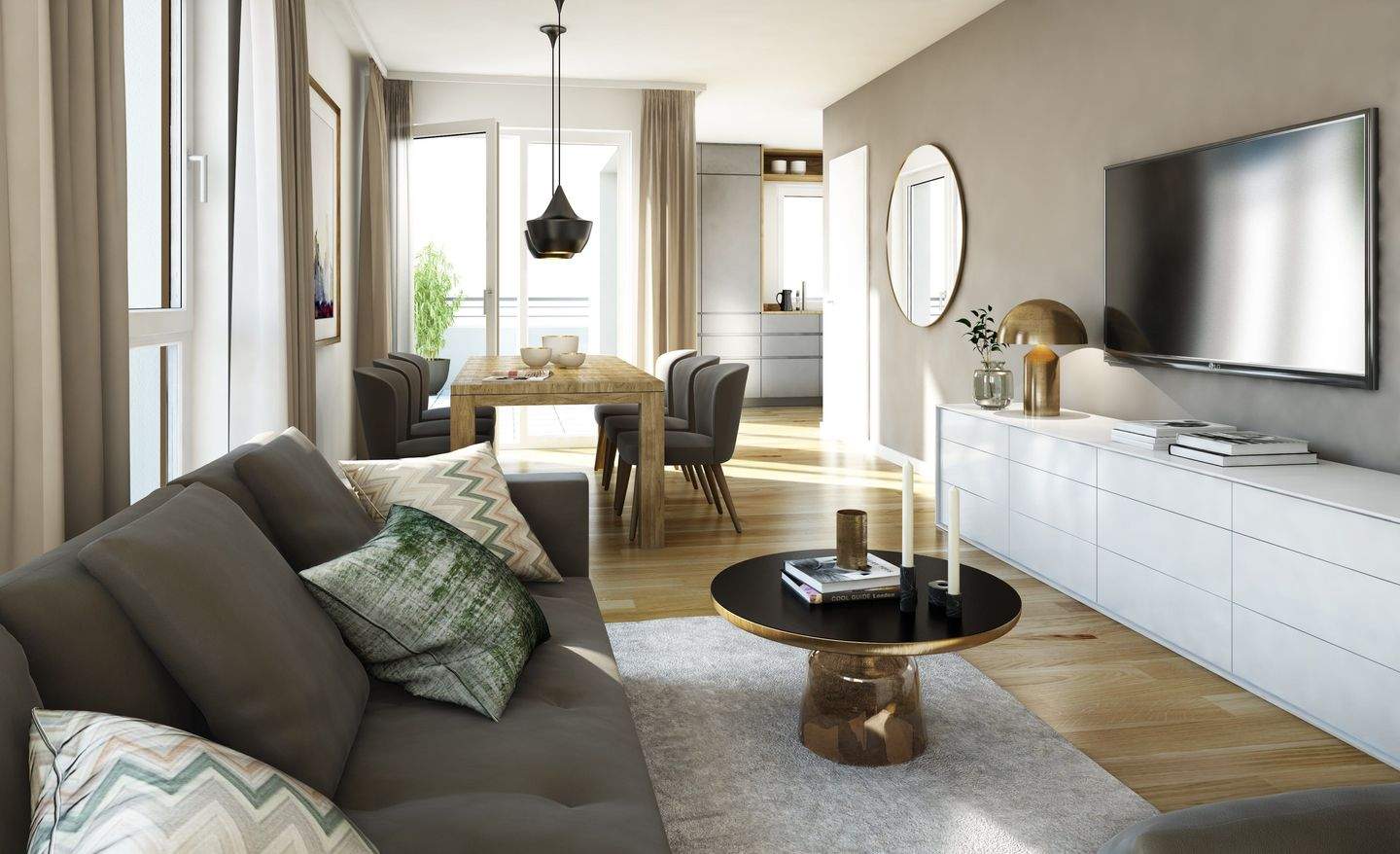 Wohn-/Eßbereich mit Terrasse - 'KaisersGARTEN' - KL-Wohnen am Pfaffgelände - Attraktive NeubauEigentumswohnungen