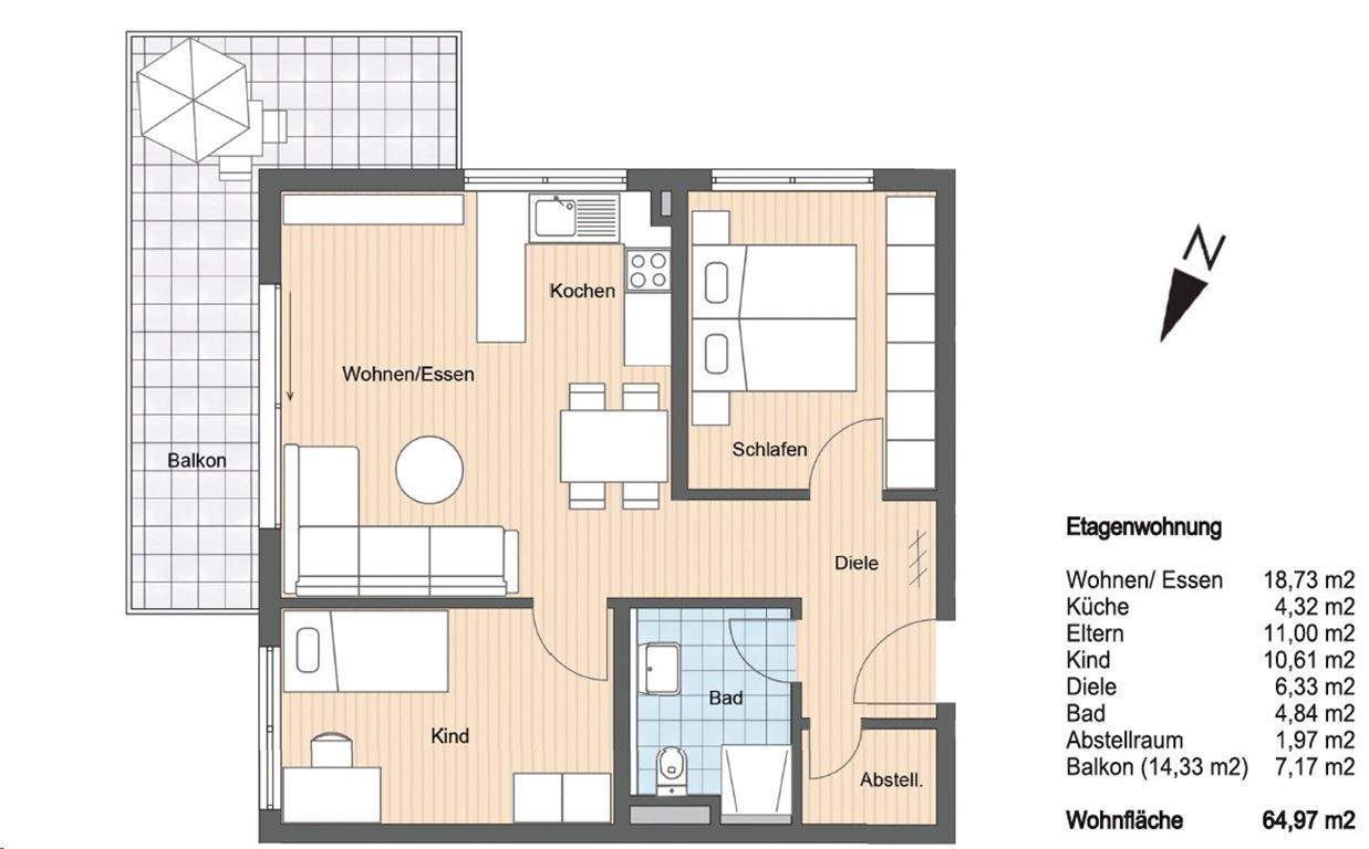 3-Zimmer-Wohnung ca. 64 m², Eck-Balkon, LIFT, EBK, Ost-Süd-Lage, Keller, TG a. W.