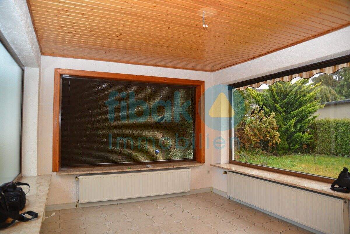 Kleines Einfamilienhaus im Bungalowstil mit Wintergarten und großem Garten