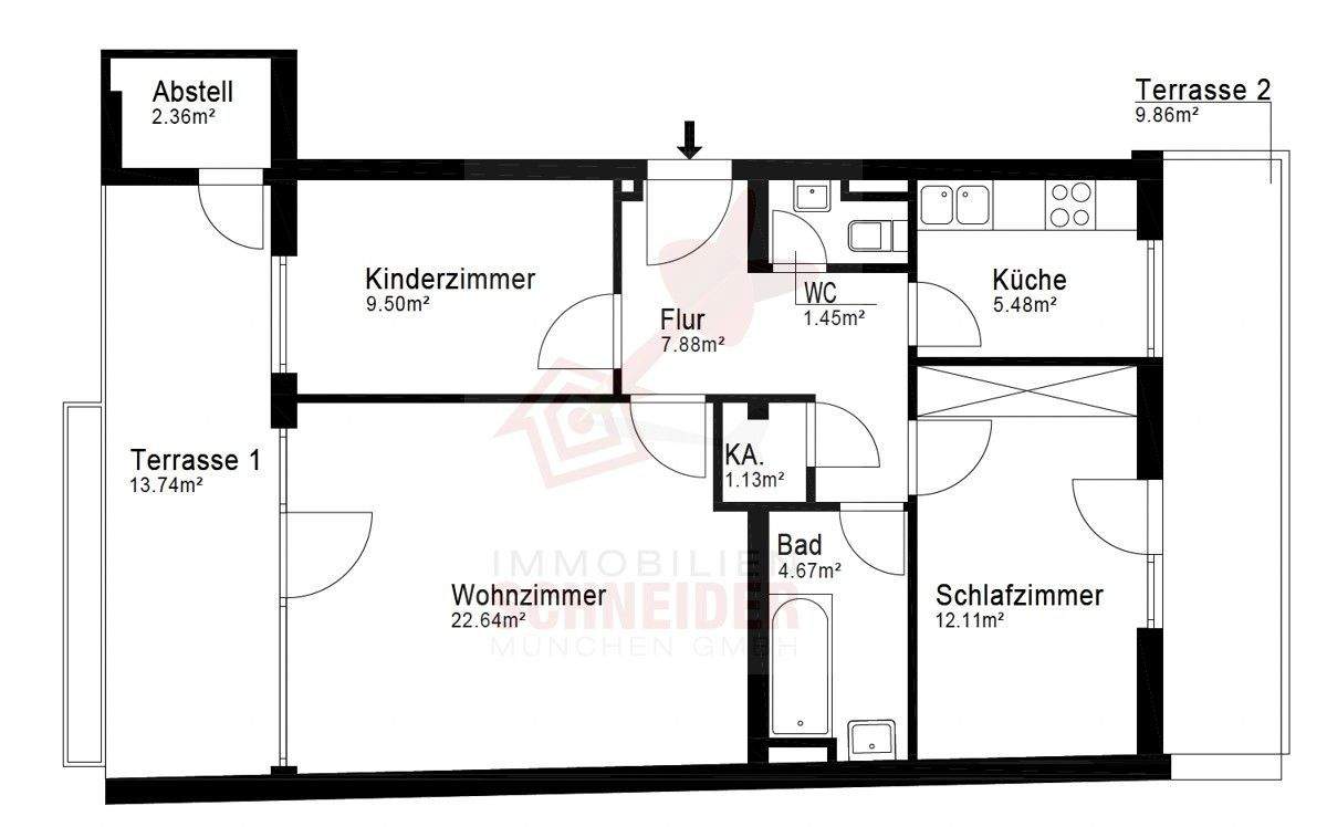 Sie befinden sich hier: IMMOBILIEN SCHNEIDER - Moosach - gepflegte 3 Zimmer Wohnung mit EBK, Parkett und 2 Dachterrassen in München Moosach - 255IE286NRY7 | 1A-Immobilienmarkt.de