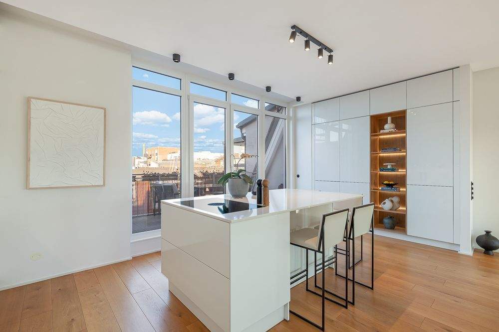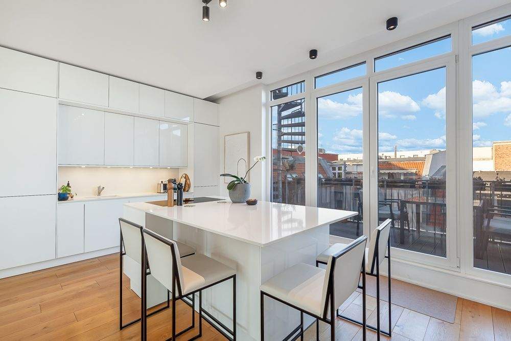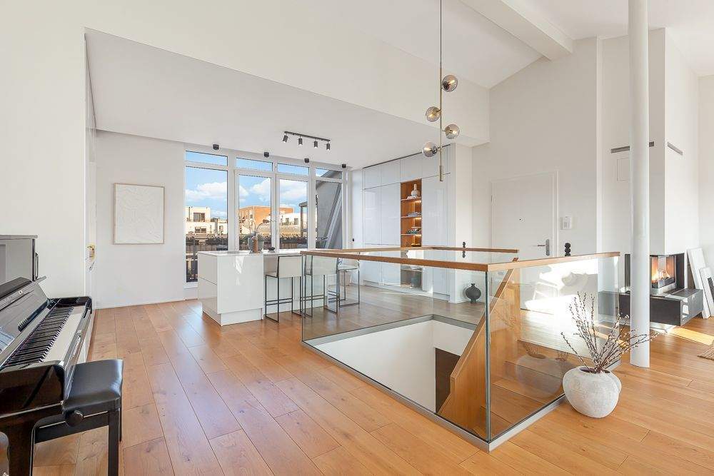 • Offener Wohn-/Essbereich - Loftartige 4-Zimmer-Dachgeschoss-Maisonette nahe dem Soho House mit Blick auf den Fernsehturm!