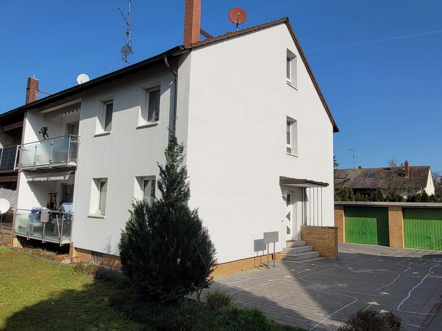 Straßenansicht Zugang über einen Stichweg - Vermietete Doppelhaushälfte mit großem Garten