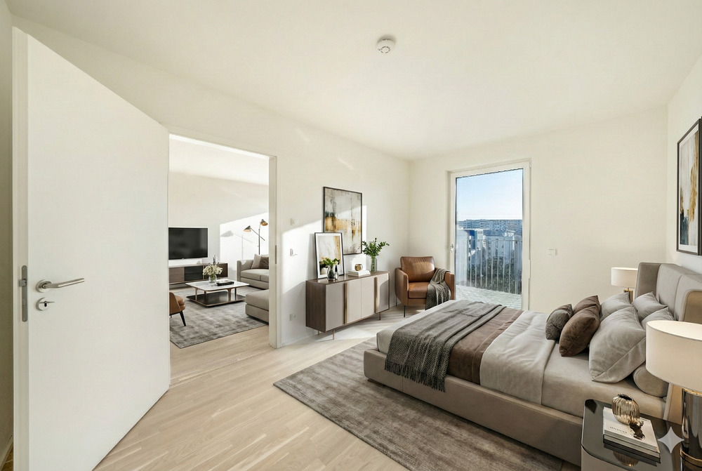 • Schlafzimmer mit Zugang zum Balkon -