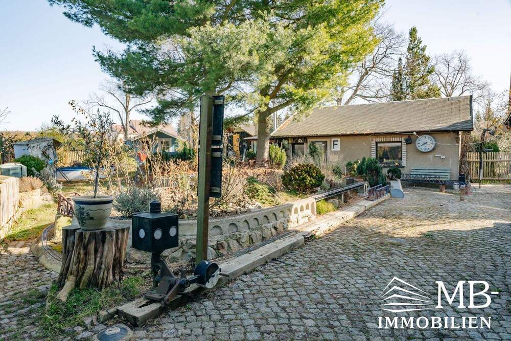 Grundstück mit vollbiologischer Klärgrube (Tiefe 7 m), eingefriedet, teilweise befestigt z.B. Eingangsbereich Granitpflaster, 1 große massive Garage mit Oberboden (Lagermöglichkeit) ca. 30 m², Schuppengebäude mit separaten Eingang, hinterer Bereich mit Gartenhaus und Hühnerstall