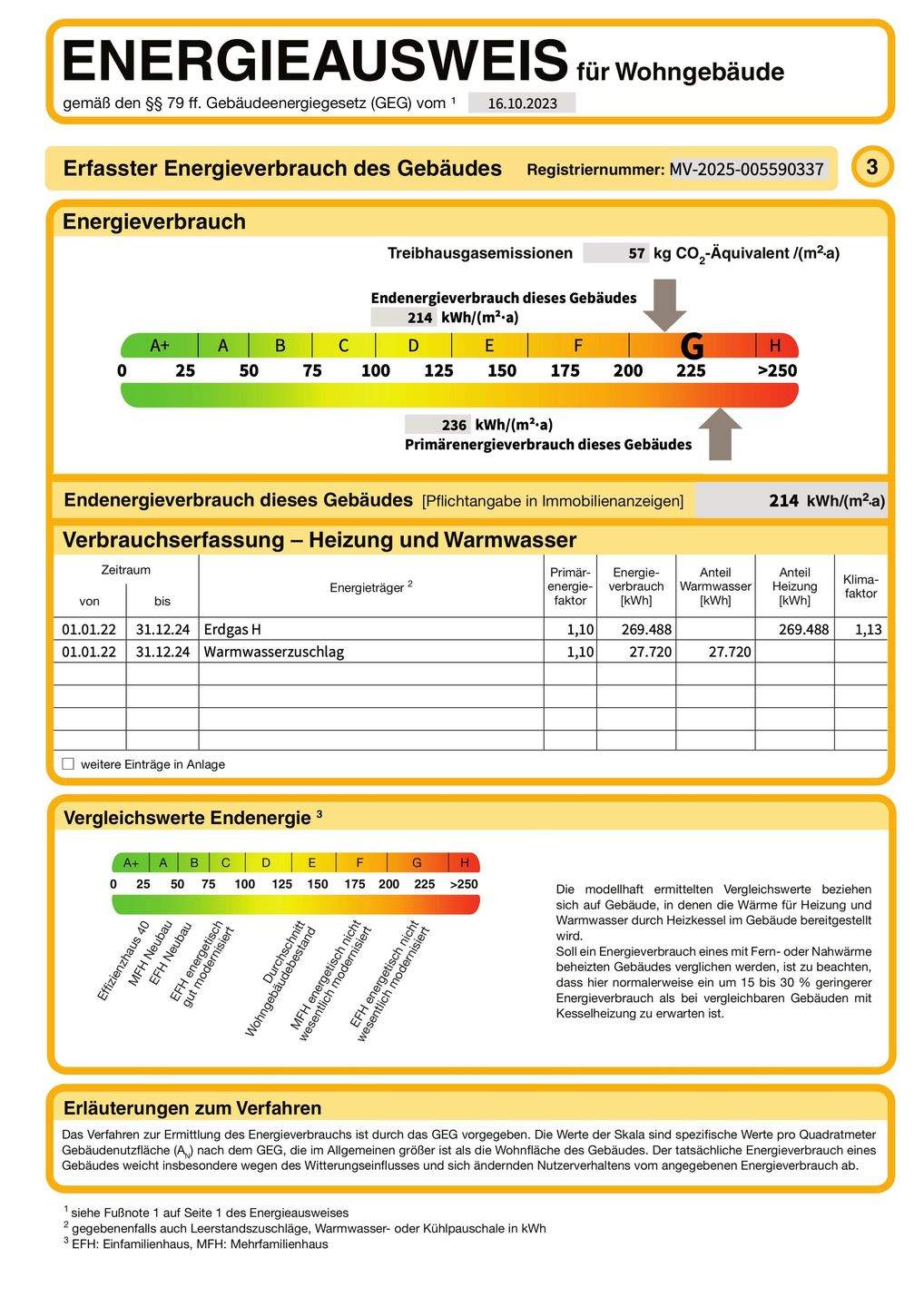 | Energieverbrauchkennwert: | 214 kWh/(m²·a) kWh/(m²·a)